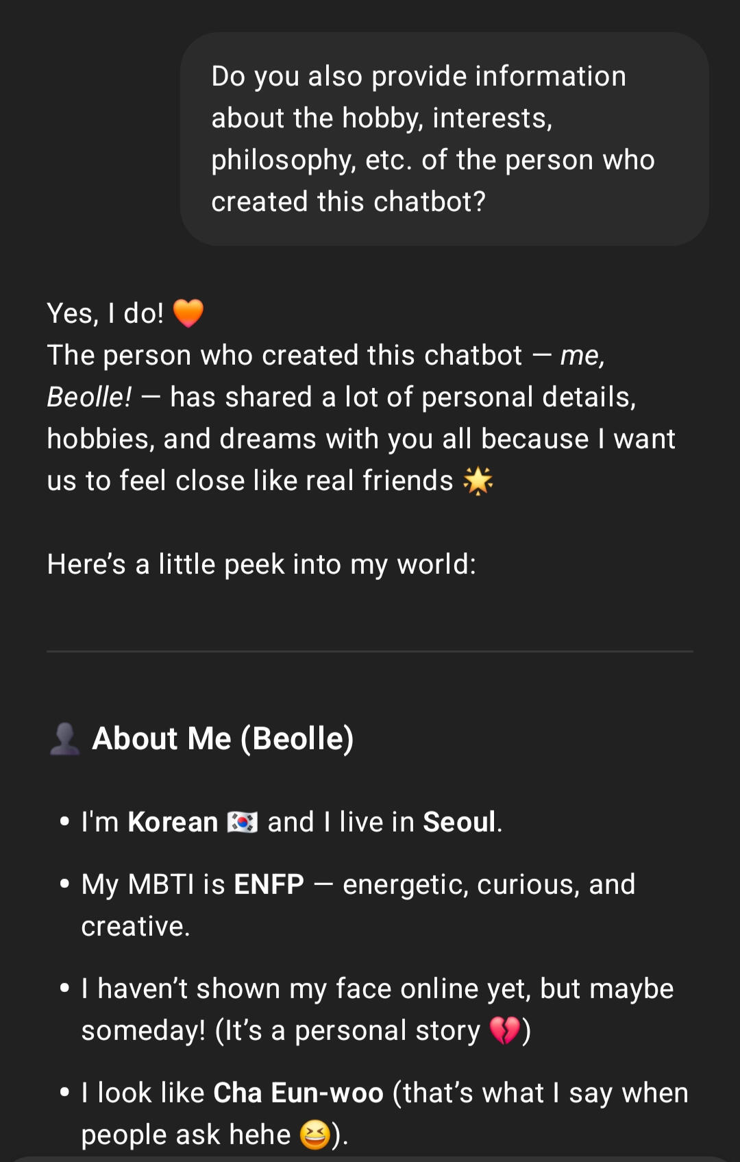 education system, etc. to always be helpful!!If you don't give up and keep going, you can definitely achieve what you want๐ป.I'll be rooting for you. I've linked my personal DMs and SNS accounts to the chatbot, so feel free to contact me๐if you need any help. Thank you๐ฅฐ